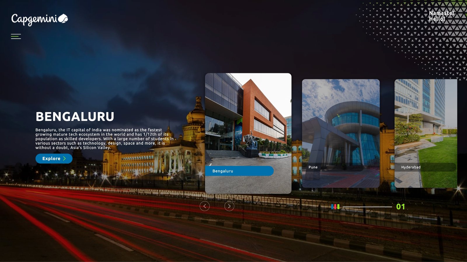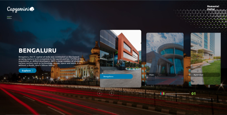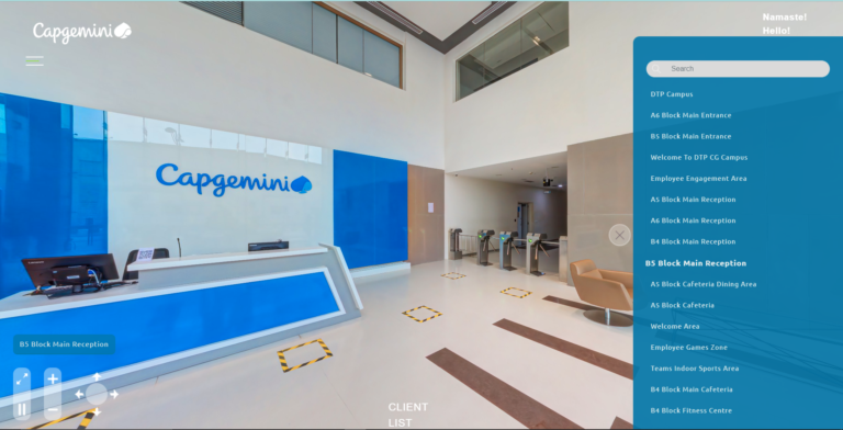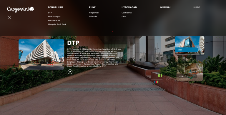 'Capgemini SE is a French multinational information technology services and consulting firm for whom we created a 360° panaromic VR tour of their office across the country, in conjunction with Liminal, allowing for virtual navigation of their campus.